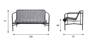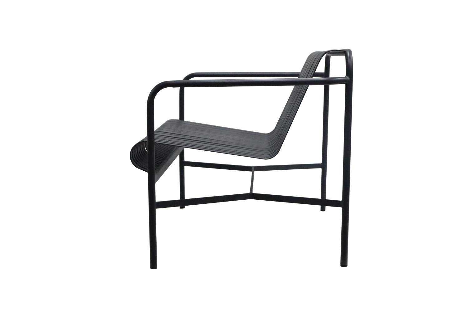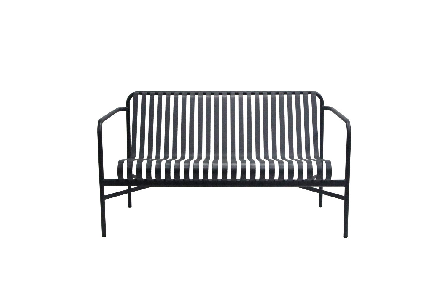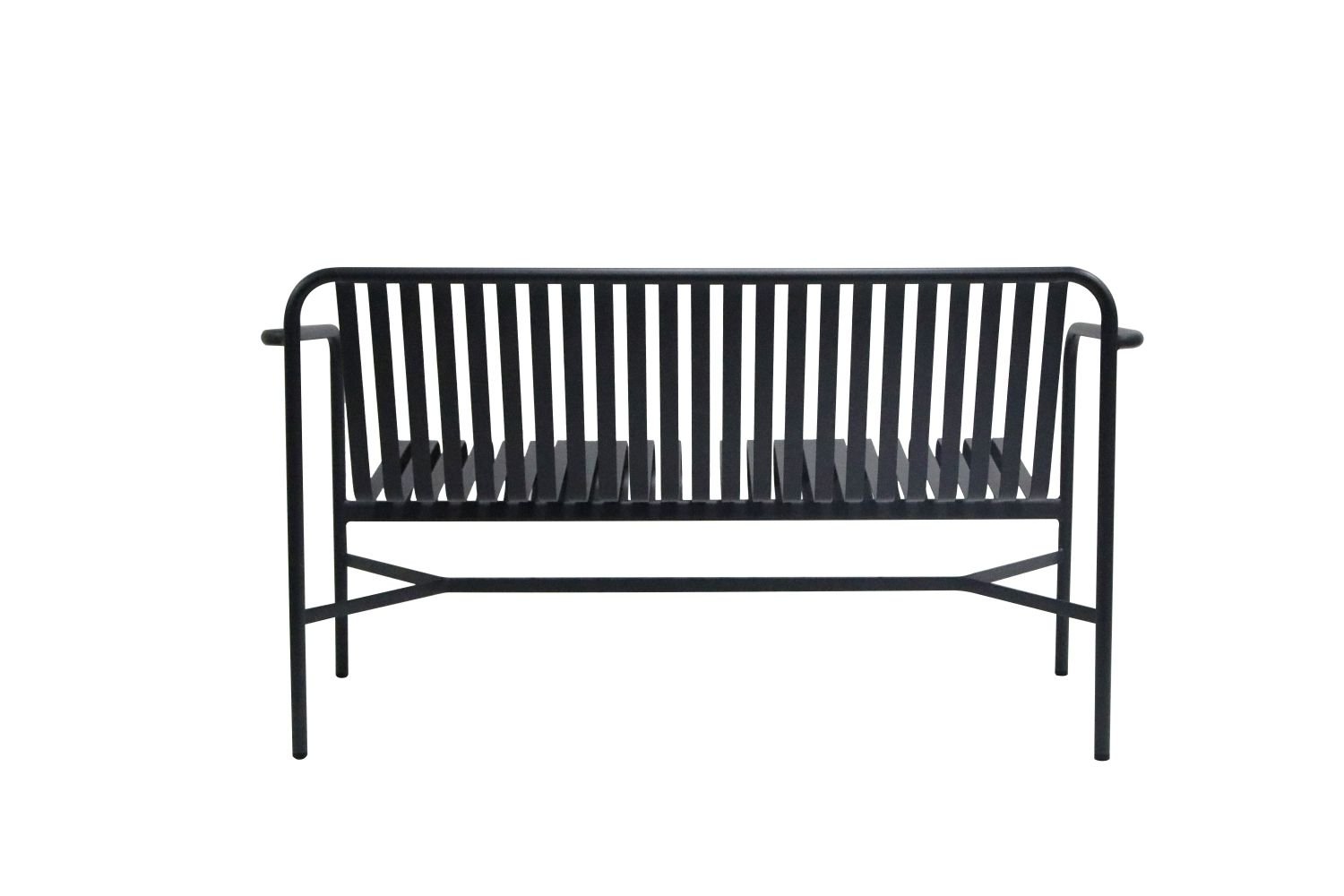 It features a minimalist design style and is constructed with a metal frame. The backrest and seat surface are made up of parallel – arranged metal bars, and it has armrests. With smooth lines, it exudes a modern vibe and is suitable for placement in both indoor and outdoor public spaces or home environments.