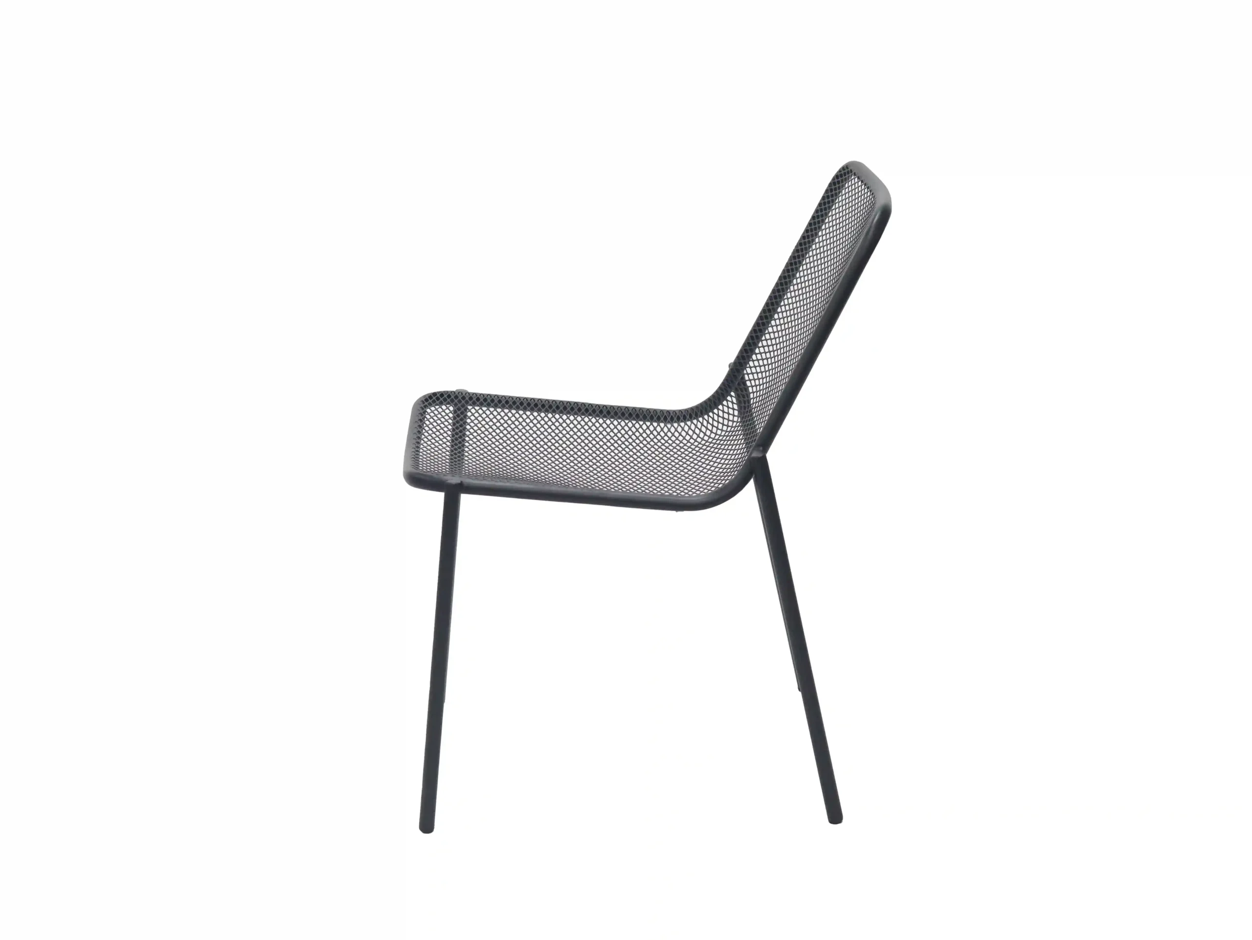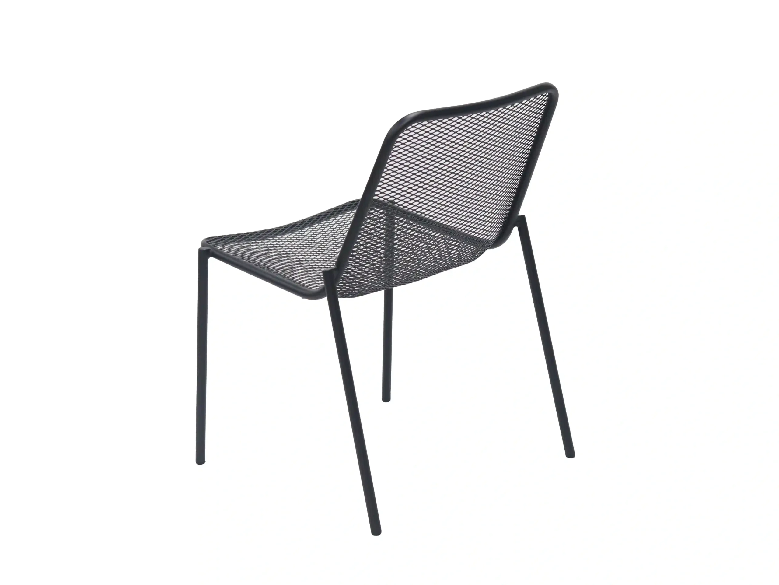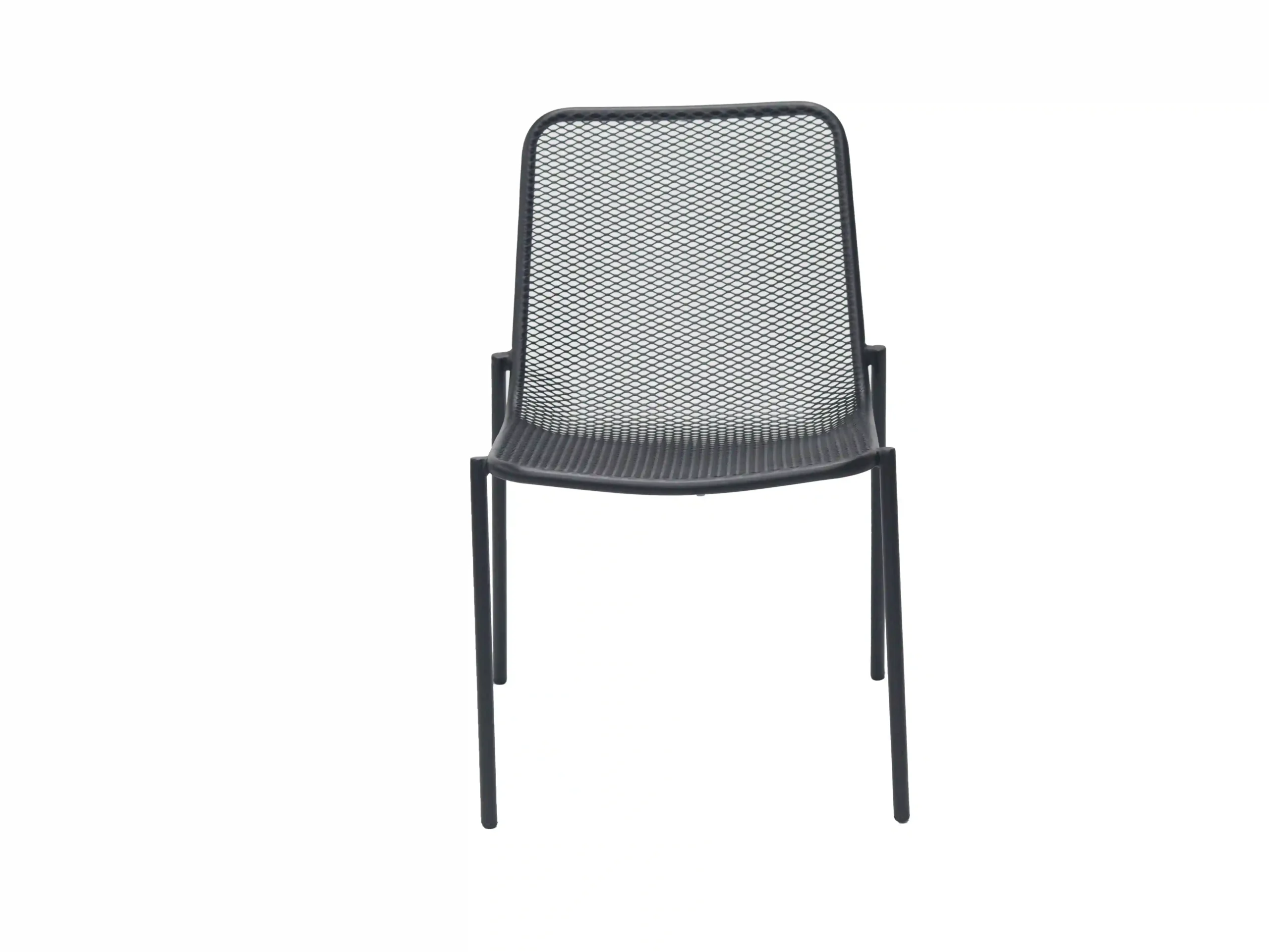 This black metal mesh chair features a sleek and minimalist outline defined by smooth lines. With a slender yet sturdy metal frame, it is paired with a breathable mesh seat and backrest. The armrests are designed to conform to the natural curve of the arms. It is not only stylish and lightweight but also adds a touch of modern industrial style to the space, offering a comfortable sitting experience along with unique aesthetic appeal.