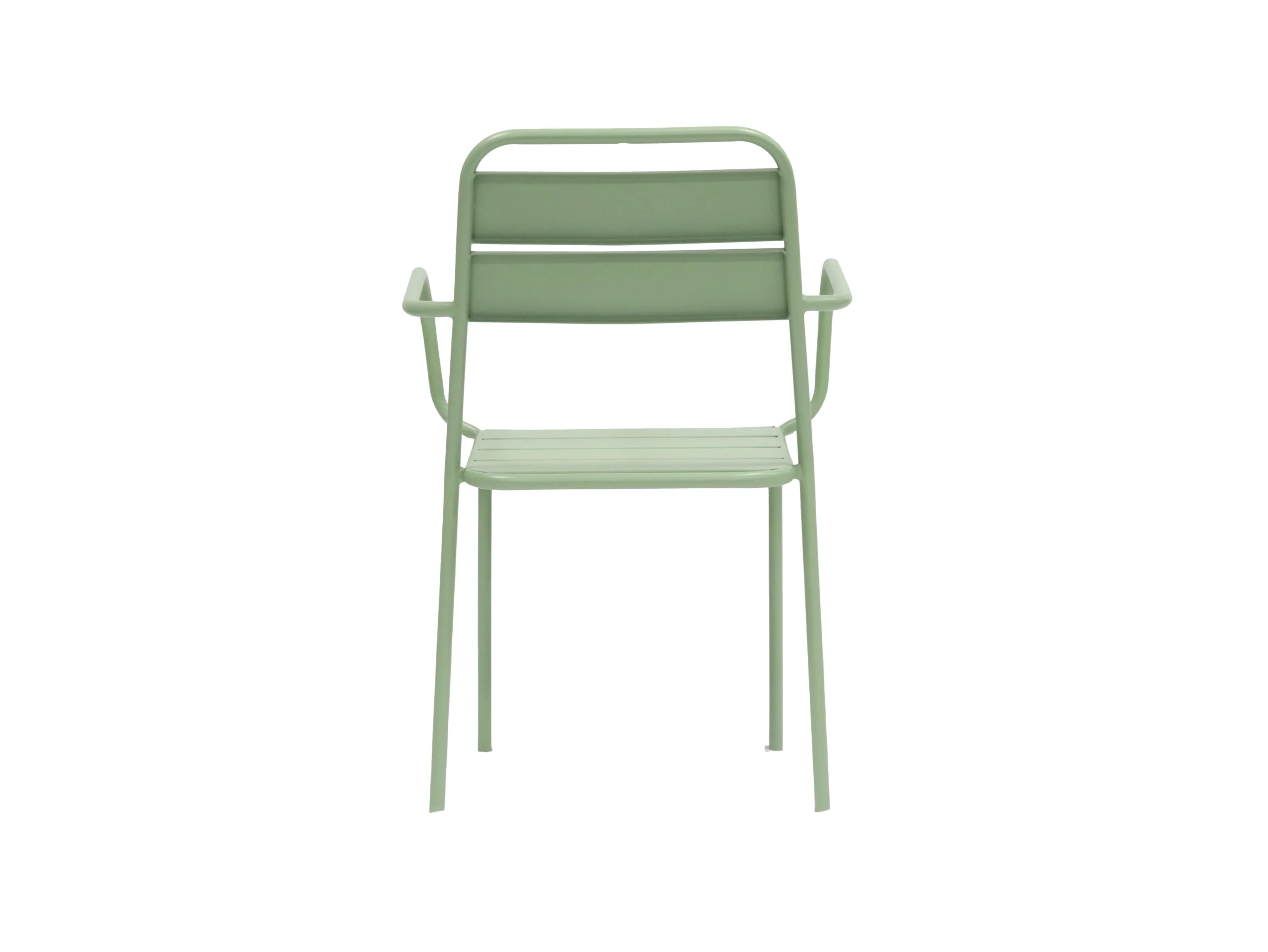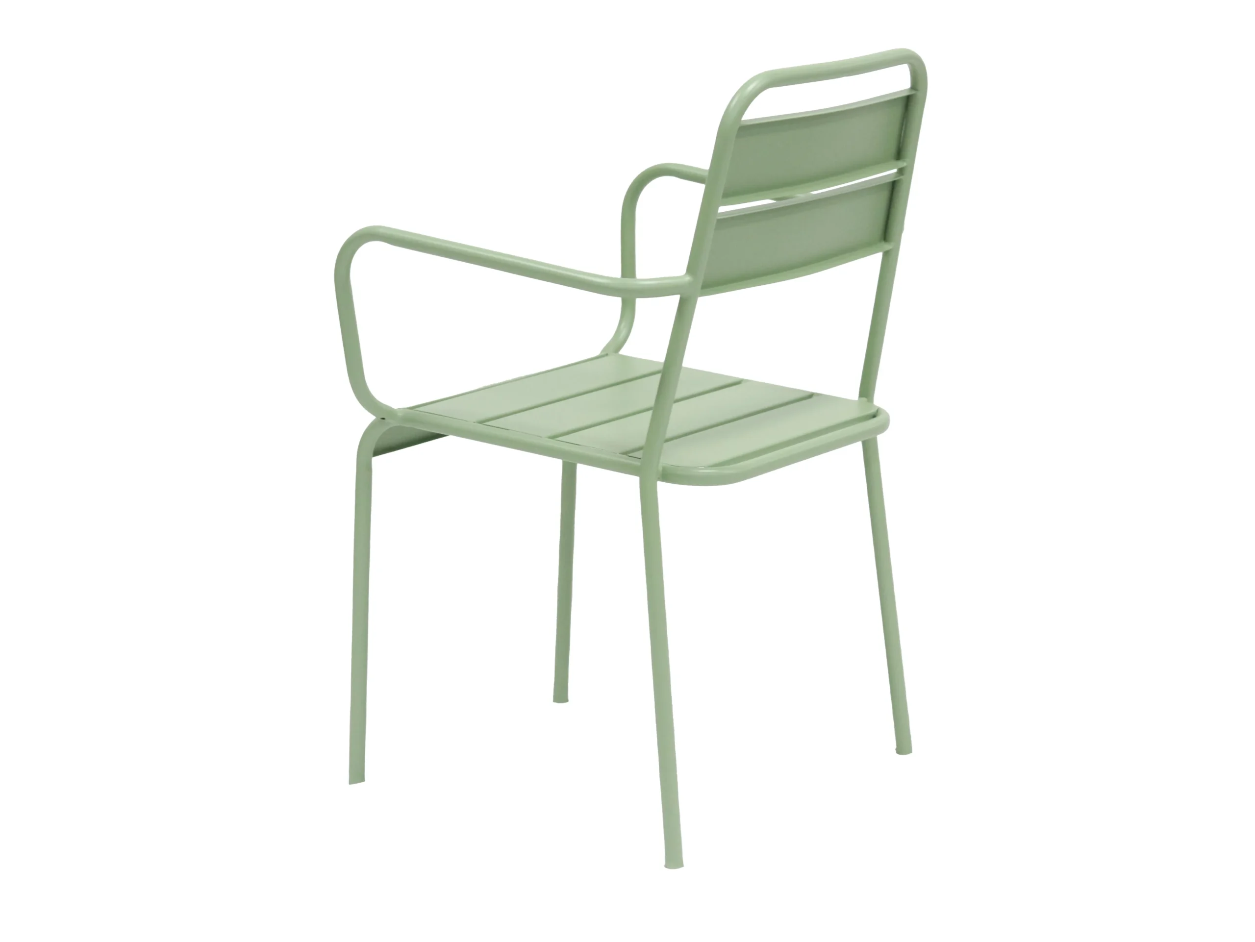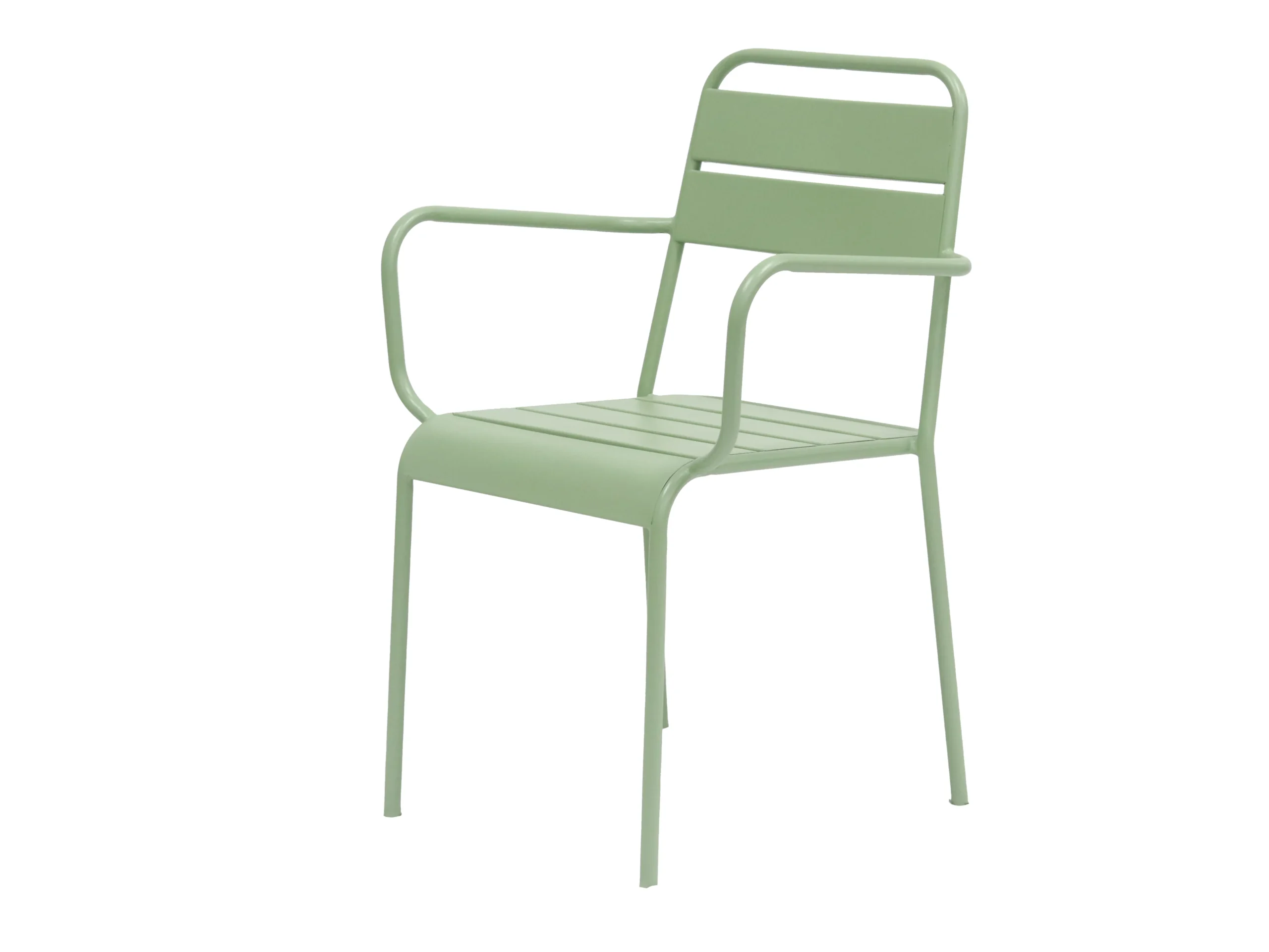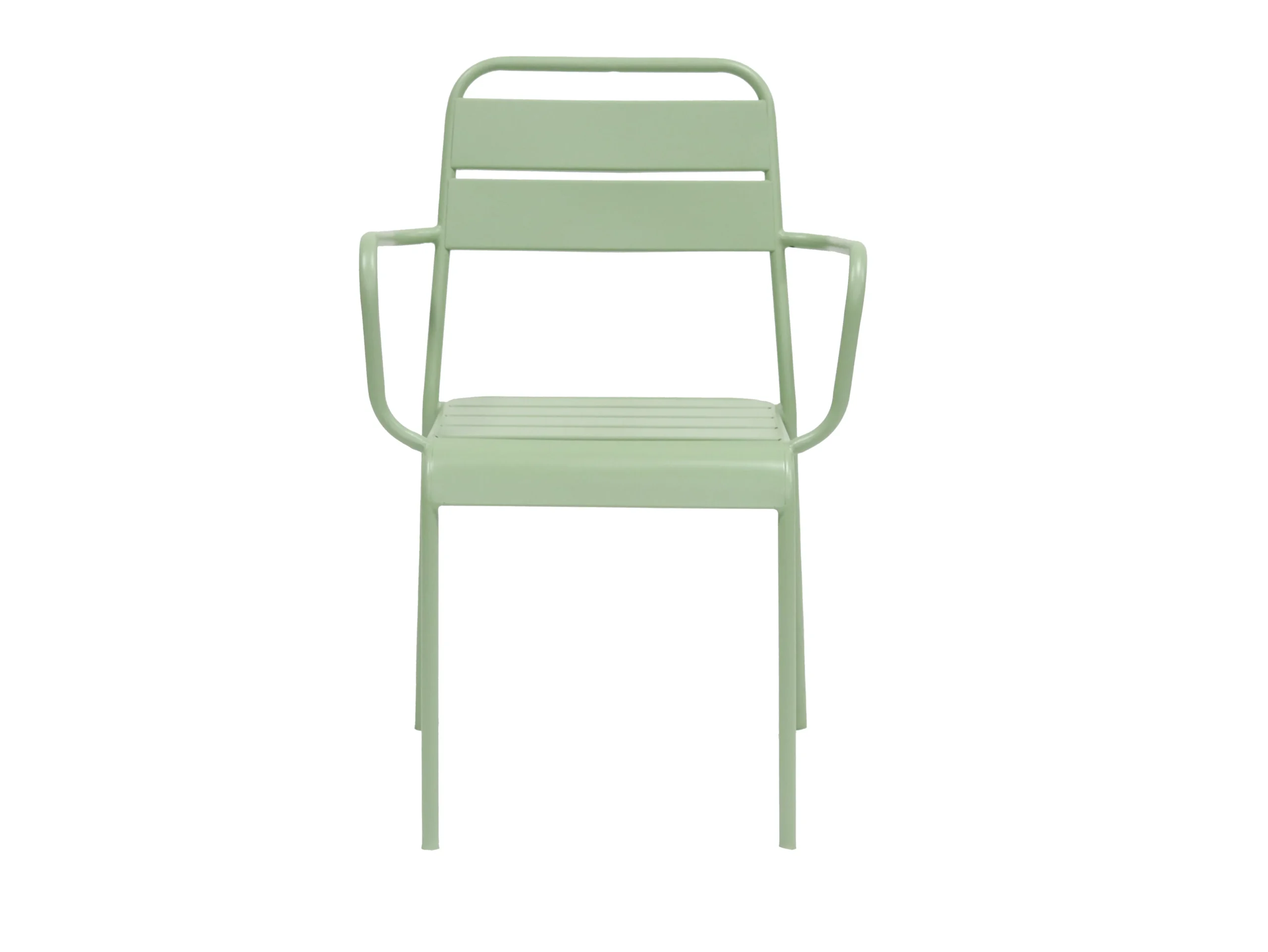 Its backrest has a horizontal – bar hollow – out design, and the armrests are in a smooth arc shape, echoing the lines of the chair legs. The overall shape is simple and modern. The seat is composed of parallel – arranged horizontal bars, which has certain air – permeability. Made of sturdy material, it is suitable for various indoor and outdoor scenarios.