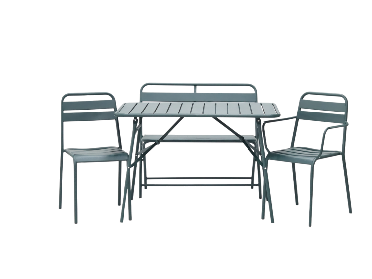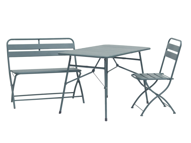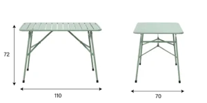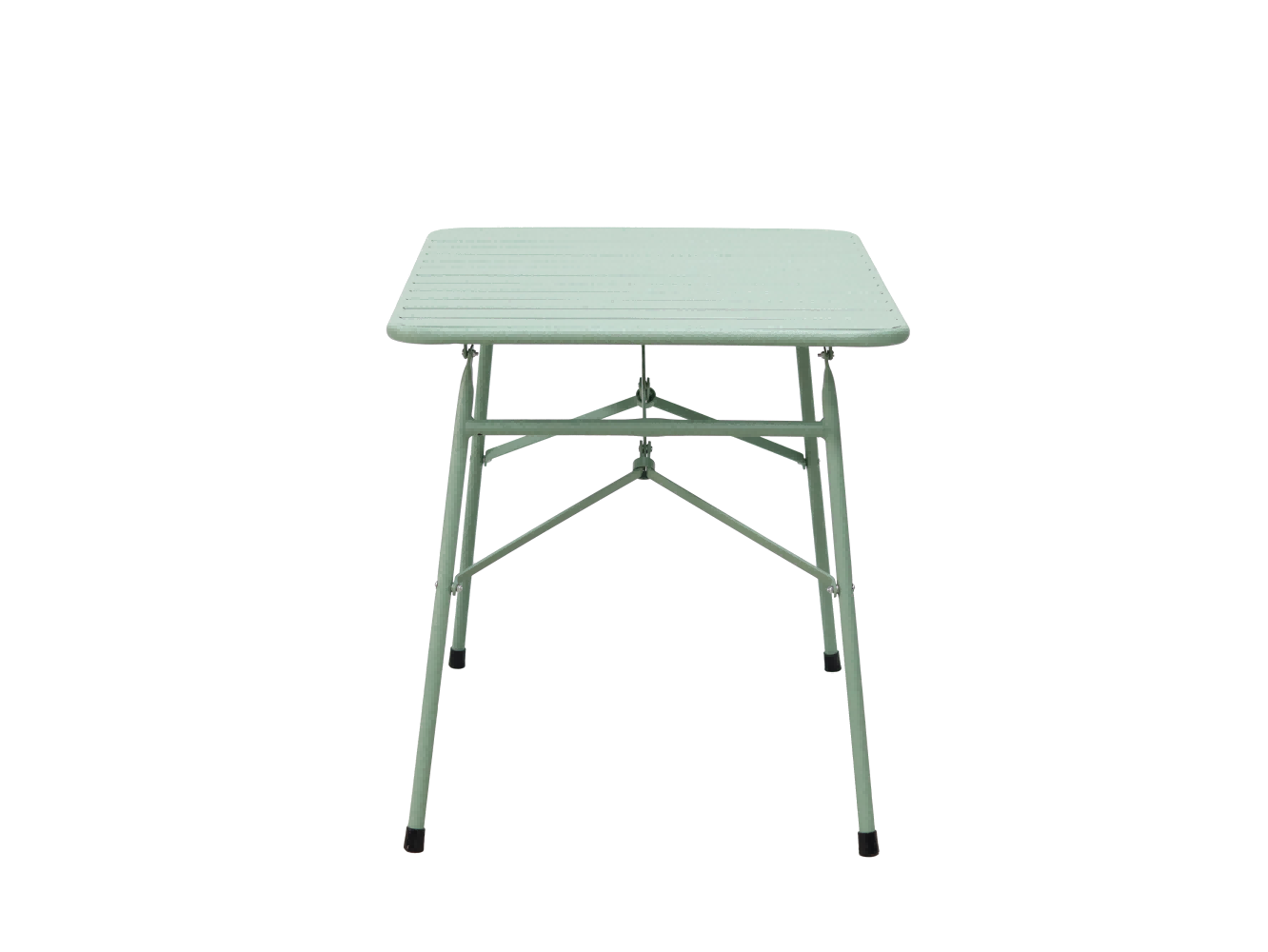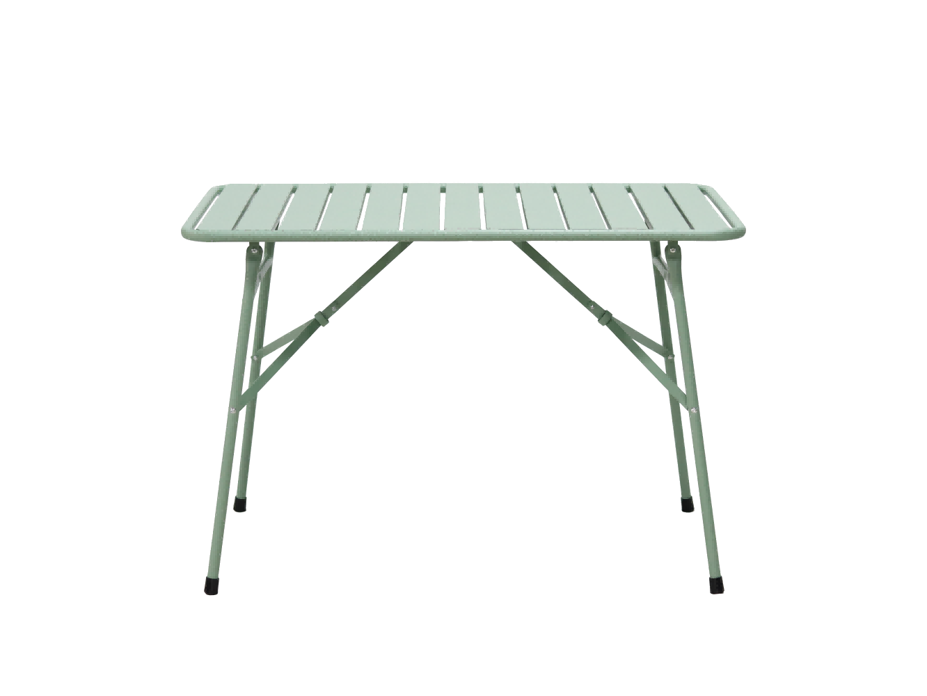 The tabletop is made by splicing multiple parallel panels, creating a unique strip – like texture. The table legs are made of metal and connected by a cross – linked rod structure, which can stably support the tabletop. There are black foot pads at the bottom of the table legs, which not only prevent slipping but also protect the floor. The folding design makes it easy to carry and store, making it very suitable for outdoor activities such as picnics and camping.