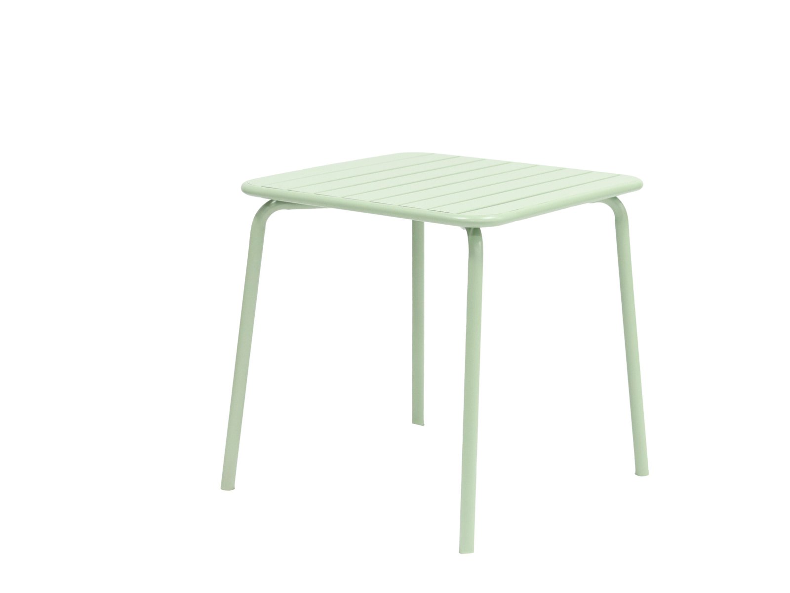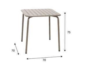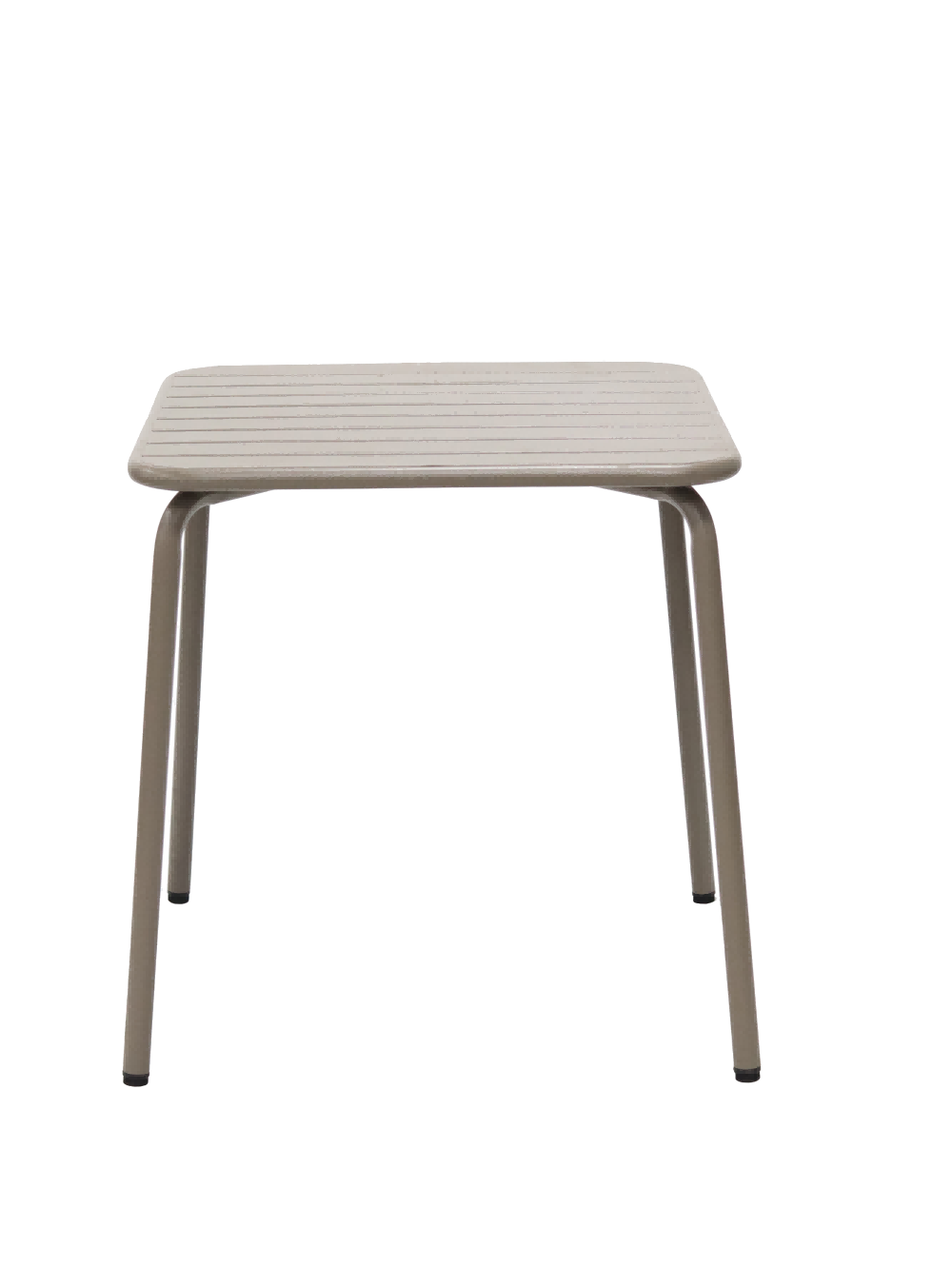 The tabletop is made up of parallel – arranged strip – shaped panels, and the edges are designed with rounded corners, giving it a softer look. The table legs are made of metal and slightly extend outwards, providing stable support for the table. With a simple and fresh overall design, it is suitable for placement in spaces such as balconies and bedrooms. It can be used to place small items or serve as a temporary storage platform.