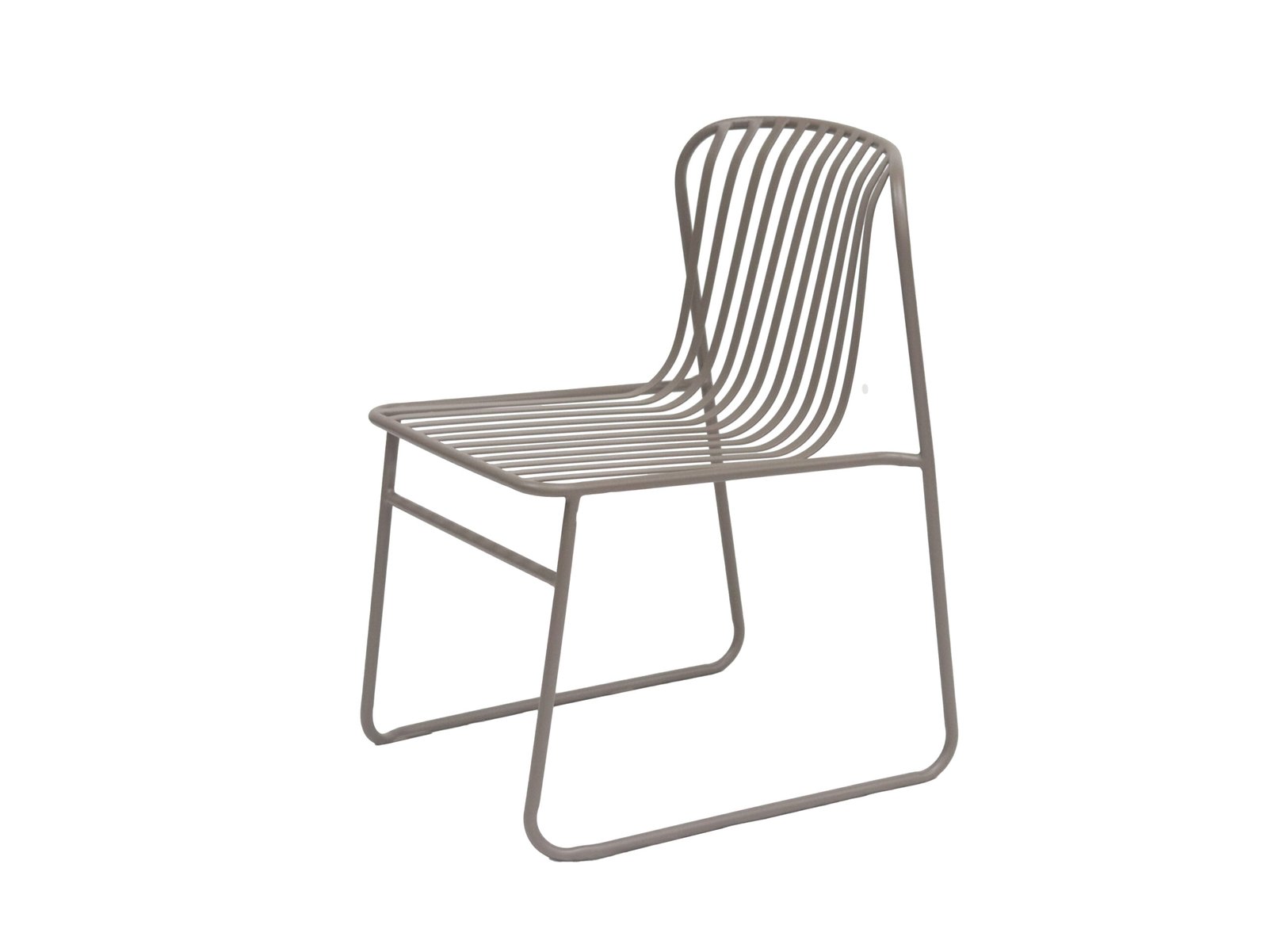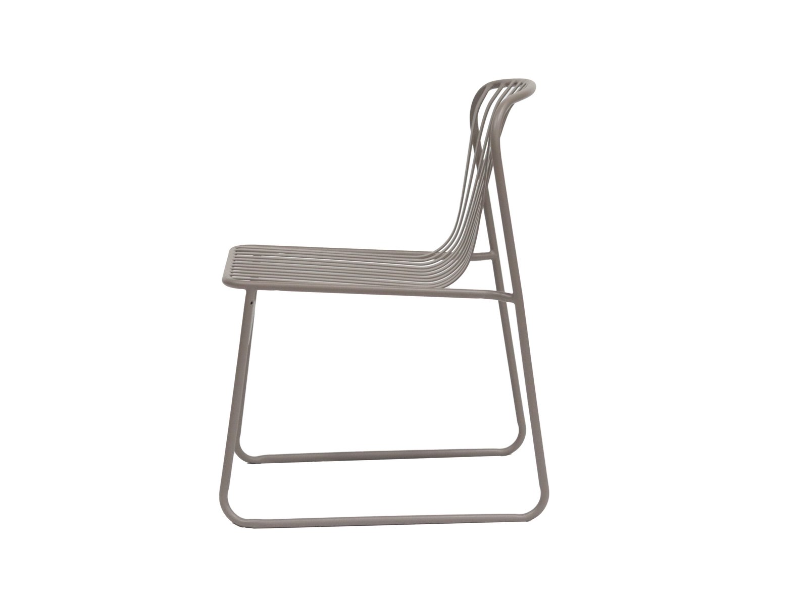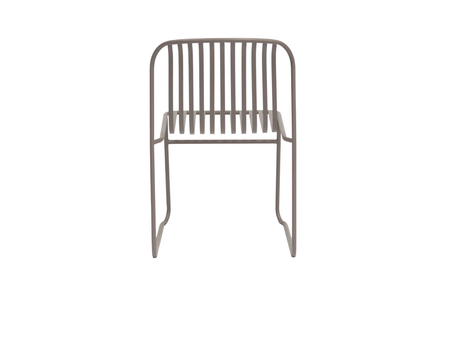Riviera is a collection consisting of a chair, small armchair, lounger and stool; its main characteristic is an elegant minimal graphic design. The entirely welded structure is made from tubular steel and rounded bars. E-Coating finish (cataphoresis + painting